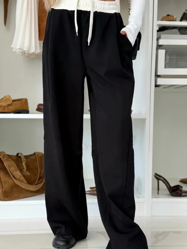 Crafted from a soft, breathable fabric blend, these women’s wide-leg pants drape beautifully with every move. The adjustable drawstring waist adds both style and practicality, while the subtle panel stitching delivers a refined, structured finish. Perfect for office-ready outfits, weekend styling, or smart-casual occasions, these versatile trousers transition seamlessly from day to night.