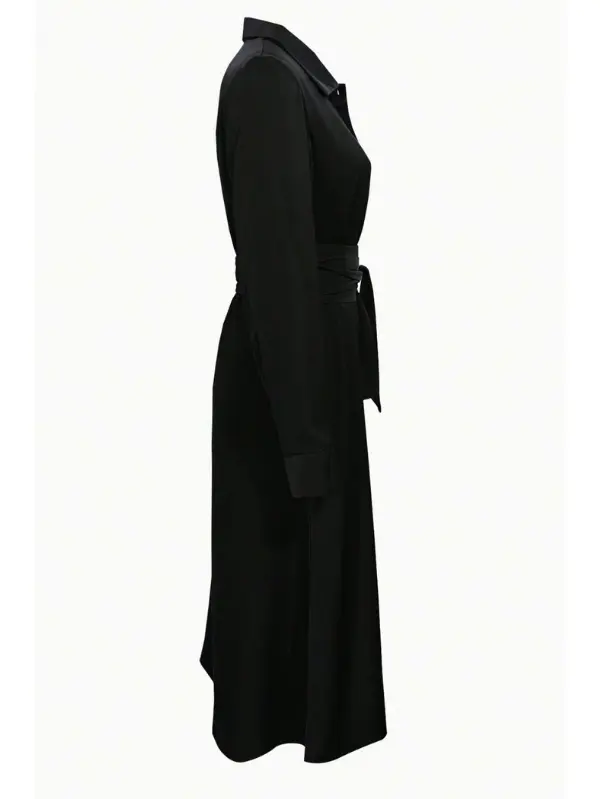 Finished in a classic black tone, the opaque fabric offers confident coverage without the need for lining. Lightweight and breathable, this midi shirt dress is ideal for year-round styling. Wear it with flats for a relaxed daytime outfit, or elevate the look with heels and refined accessories for an evening-ready ensemble.