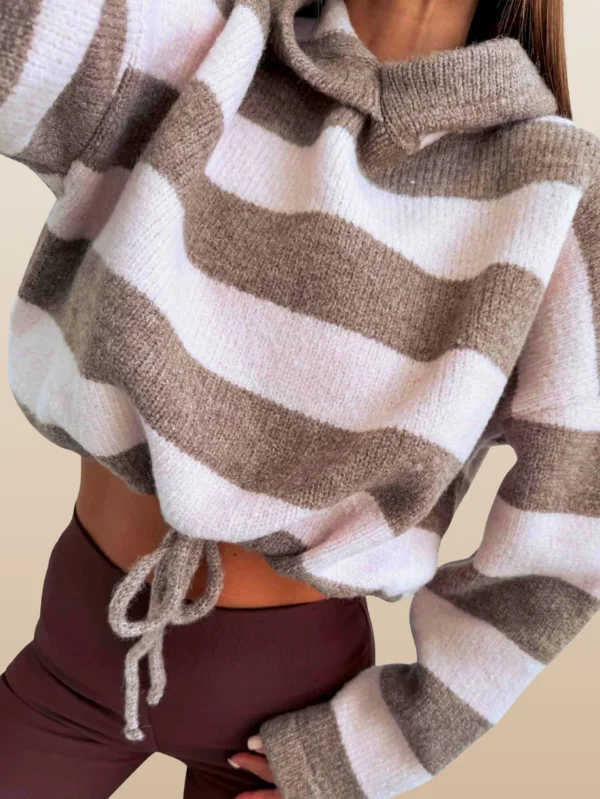 The subtle striped pattern and hooded knit design create a casual yet refined look that’s easy to wear throughout the cooler months. With its comfortable fit and breathable feel, this sweater is ideal for layering during fall days or wearing on its own when temperatures drop.