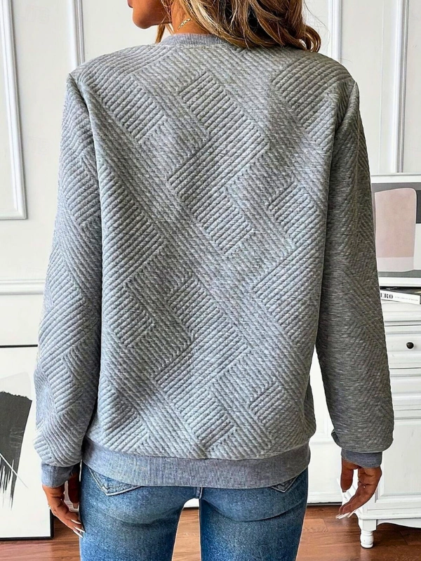 This piece features a softly structured silhouette that feels lightweight yet cozy. The textured fabric adds visual interest while maintaining breathability, making it ideal for daily wear. As a long sleeve sweatshirt women can rely on for comfort, it balances warmth and ease without feeling heavy. Explore more effortless layers in our Tops collection.