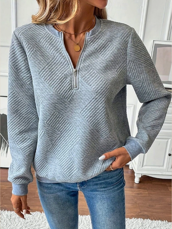 Designed for everyday comfort with a clean, modern finish, this quarter zip sweatshirt women brings together relaxed styling and subtle texture for an easy wardrobe essential. The adjustable zip neckline adds versatility, making it perfect for layering through changing seasons.