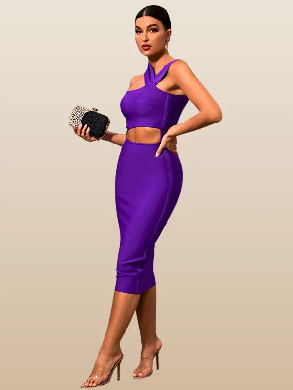 Make a bold entrance in this striking purple bandage dress designed to sculpt and enhance your natural curves. The structured silhouette hugs the body with a smooth, supportive fit, while the vibrant tone adds a confident, statement-making finish.