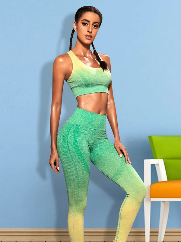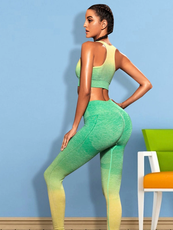 Two-Piece Gradient Sports Tank and Leggings Workout Set