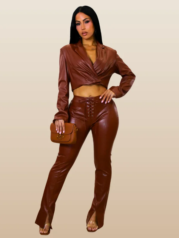 Make a fearless fashion statement with the Vinyl Vixen Flared Ladies Pants, designed for women who embrace bold, confident style. Crafted with a high-shine vinyl finish, these standout pants instantly elevate your look with a sleek, modern edge that turns heads wherever you go. The lace-up front detail adds a striking, fashion-forward accent, while the flared silhouette with subtle front slits creates a leg-lengthening effect that flatters your figure.