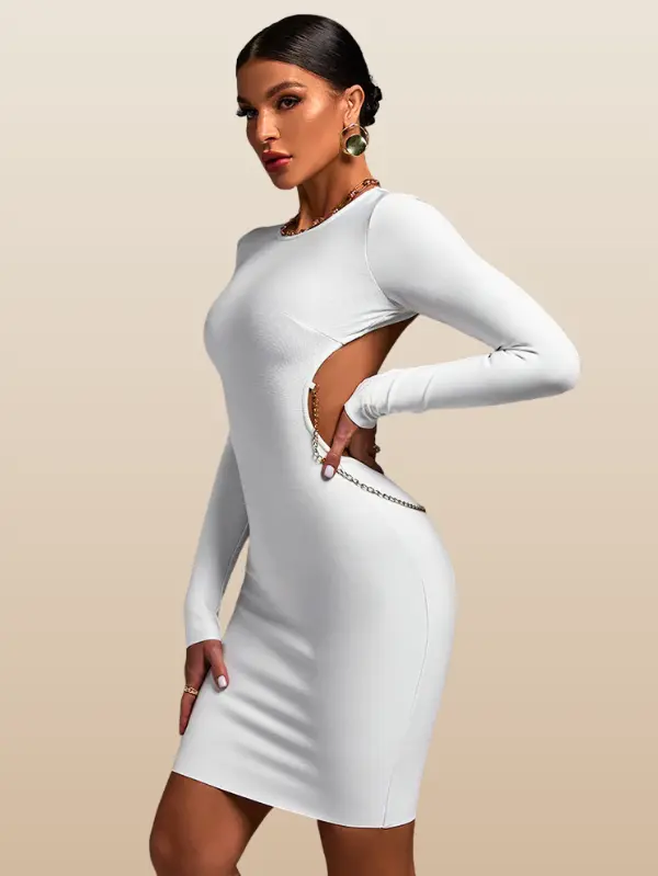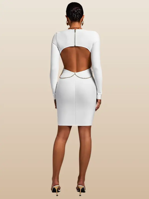 This long-sleeve bandage dress features a supportive, body-contouring construction that smooths and defines for a confident, polished look. The long sleeves create balance and elegance, while the open-back design introduces a bold yet sophisticated edge.