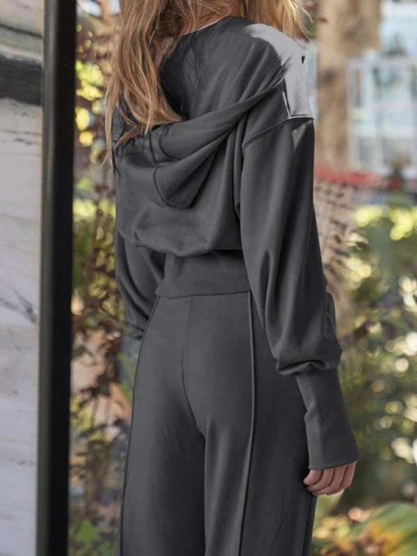 Designed for movement and everyday comfort, this activewear set women delivers an effortless balance of function and style. The zip-up hoodie and relaxed pants create a coordinated outfit that feels modern, versatile, and easy to wear beyond workouts.